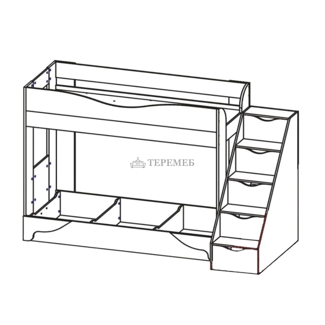 Конструкция данной модели универсальна: лестница с ящиками собирается как с правой, так и с левой стороны кровати.