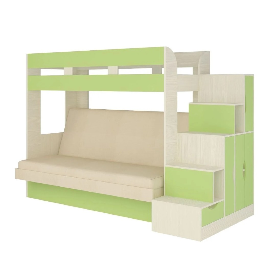 Диван первого яруса имеет механизм трансформации "книжка" с двумя положениями: "диван" и "кровать".