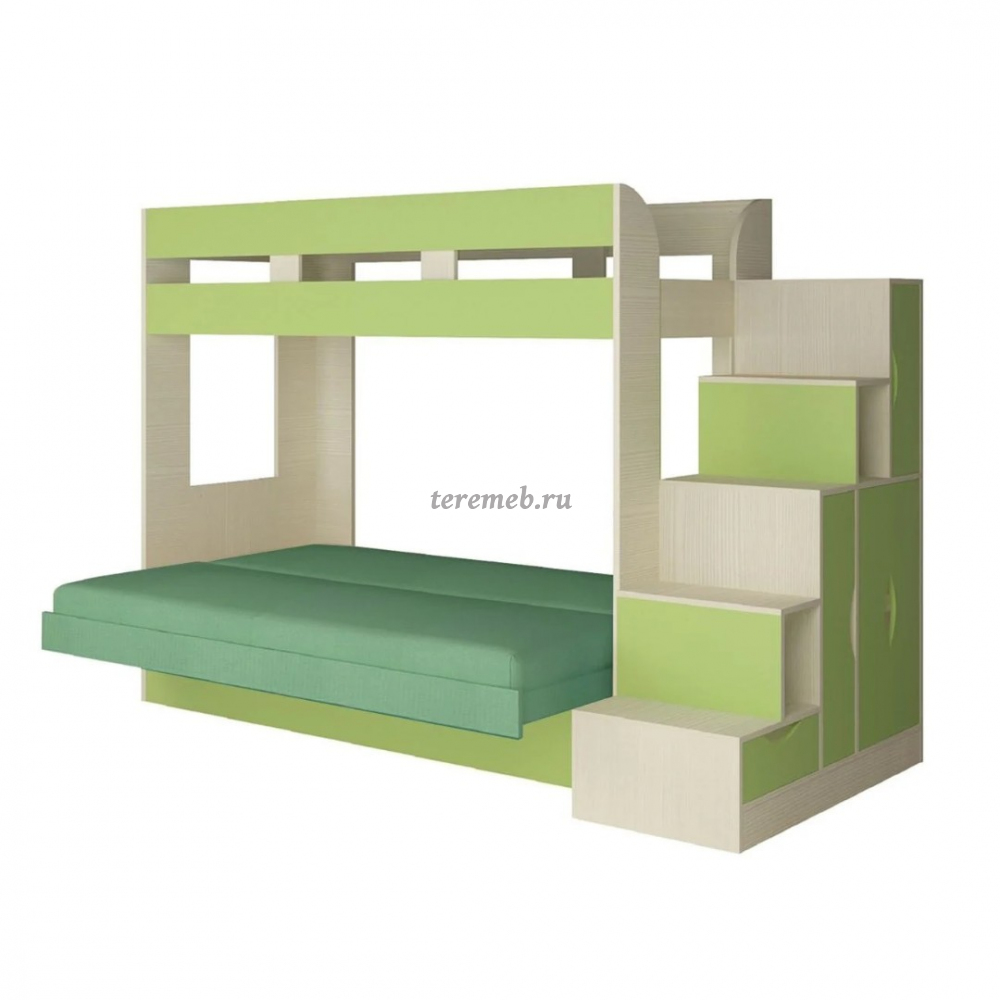 Диван первого яруса имеет механизм трансформации "книжка" с двумя положениями: "диван" и "кровать".