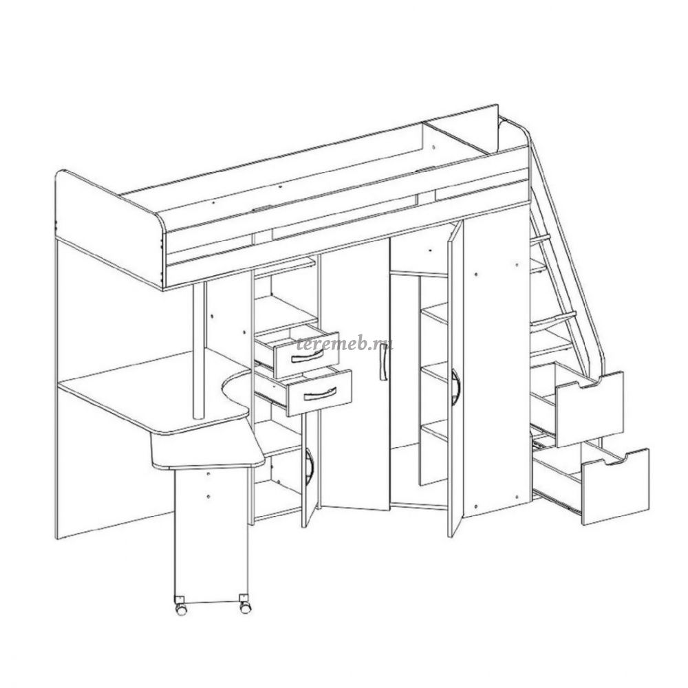 Европейский дизайн, практичная компоновка и отличная цена делают кровать-чердак "Карамель 77-03" идеальным вариантом для формирования жилого пространства школьника в небольшой детской комнате.