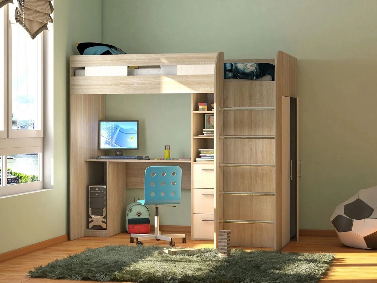 Описание: Кровать-чердак детская "Лео" оригинальная функциональная модель для детей и подростков, которая помогает создавать для ребёнка максимально удобное спальное место, при этом дополнительно освобождая пространство для игр и занятий в детской комнате.