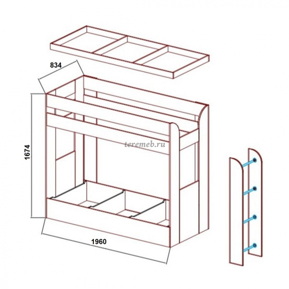 Матрас на верхний ярус в комплект к кровати не входит и приобретается дополнительно.