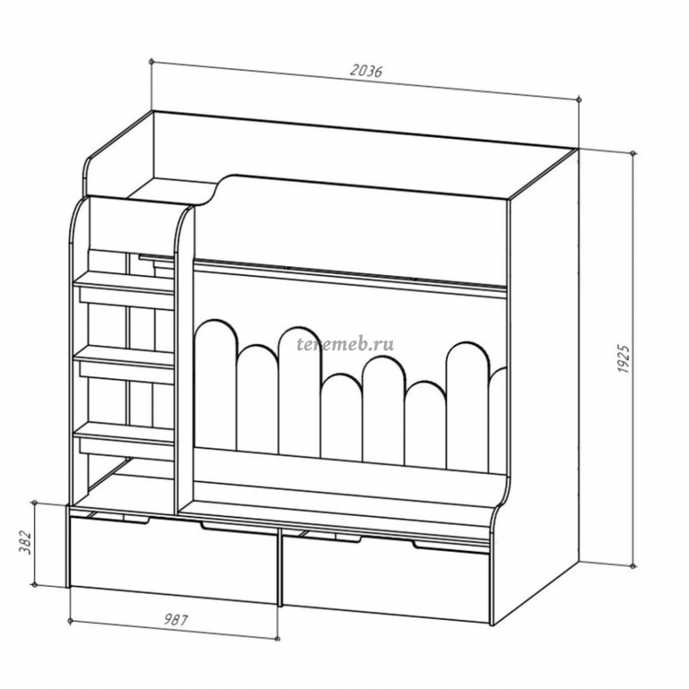 Описание: Детская двухъярусная кровать "Бруно" продумана дизайнерами до мелочей. Она позволяет рационально использовать пространство и обеспечивает свободный доступ детей к местам хранения вещей.