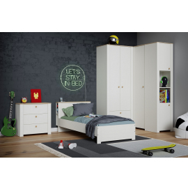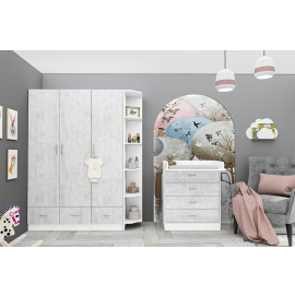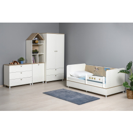 Корпус изготовлен из высококачественного ламинированого ДСП толщиной 16 мм классом эмиссии Е-1, что соответствует нормативам, принятым при изготовлении мебели для детских комнат.