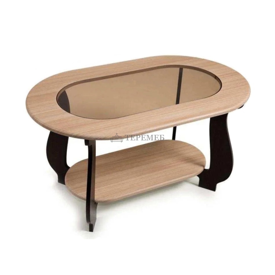 Описание: Современный журнальный столик "СЖ-21", привлекающий внимание неординарным дизайном, оригинальным сочетанием оттенков и красивой вставкой из тонированного стекла. Его тёмные фигурные ножки красиво сочетаются со светлыми полочкой и столешницей, образуя единую композицию.