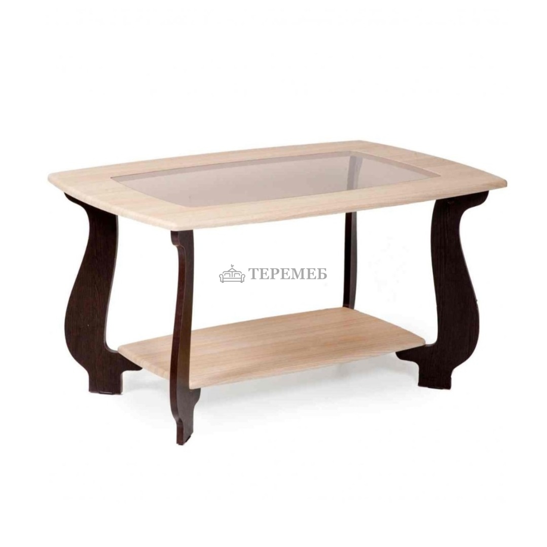 Описание: Современный журнальный столик "СЖ-23", привлекающий внимание неординарным дизайном, оригинальным сочетанием оттенков и красивой вставкой из тонированного стекла. Его тёмные фигурные ножки красиво сочетаются со светлыми полочкой и столешницей, образуя единую композицию.
