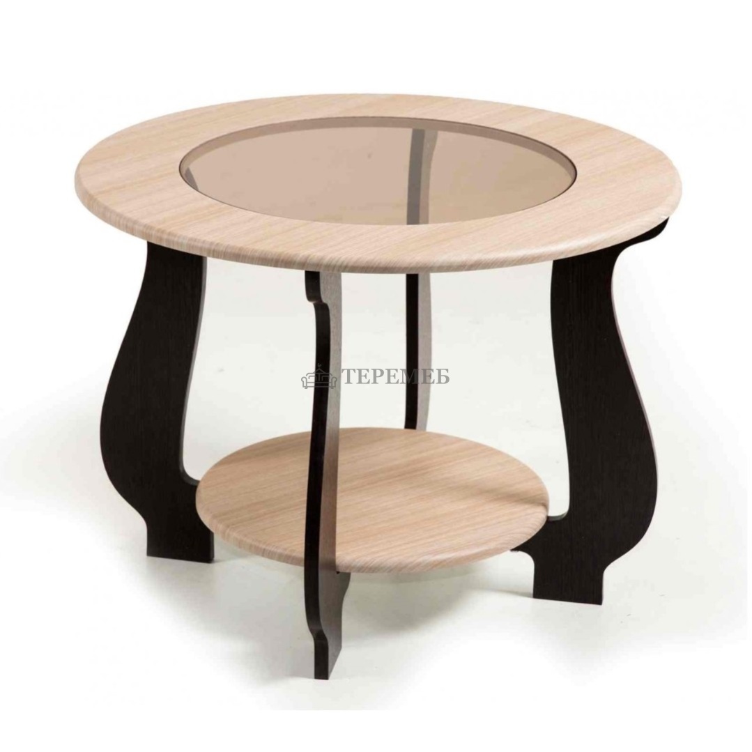 Описание: Современный журнальный столик "СЖ-24", привлекающий внимание неординарным дизайном, оригинальным сочетанием оттенков и красивой вставкой из тонированного стекла. Его тёмные фигурные ножки красиво сочетаются со светлыми полочкой и столешницей, образуя единую композицию.