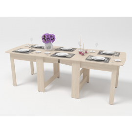 Стол имеет три положения: полностью сложенный, разложенный наполовину или полностью разложенный.