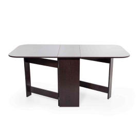 Столешница стола имеет прямоугольную форму, состоит из трёх секций: две крайние складные и средняя — стационарная.