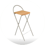 Временным решением для высокого стола может стать складной недорогой барный стул. Он легко складывается, имеет спинку и его конструкция довольно устойчива. В сложенном виде - очень компактный и его удобно перевозить на машине.