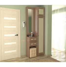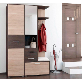 В левой части открытую вешалку с тремя крючками, полку для головных уборов, отделение с распашной дверью, а также открытую нишу.