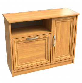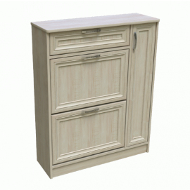 Тумба для обуви оборудована открытой нишей с одной полкой и откидной секцией, рассчитанной на 4 пары обуви.