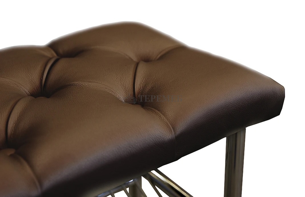 Сиденье выполнено с наполнителем из ППУ, обито высококачественной экокожей и декорированно каретной стяжкой.