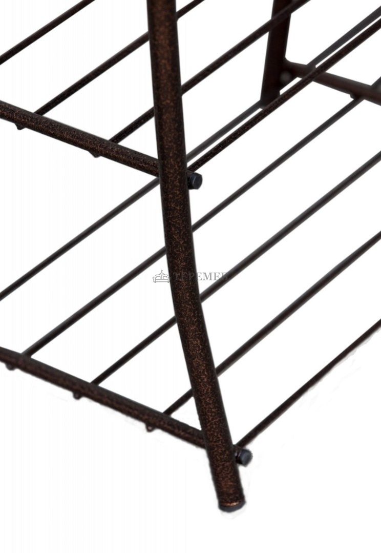 Полки под обувь, рассчитанные на 8 пар обуви, изготовлены из металлических труб и прутка.