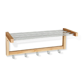 Каркас полки изготовлена из массива бука размером 34х24 мм, с покрытием бесцветным лаком.