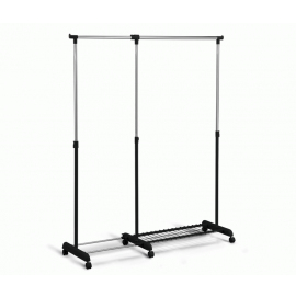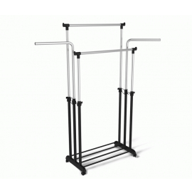 Высота вешалки регулируется в пределах 940-1660 мм (телескопическая система). Ширина штанги позволяет вместить до 25 вешалок-плечиков. Максимальная распределенная нагрузка на штангу 16 кг.