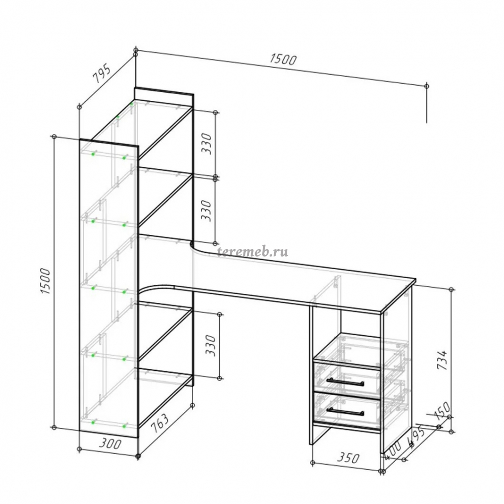 Изготовлен из высококачественного ЛДСП толщиной 16 мм с обработкой торцов кромкой ПВХ.
