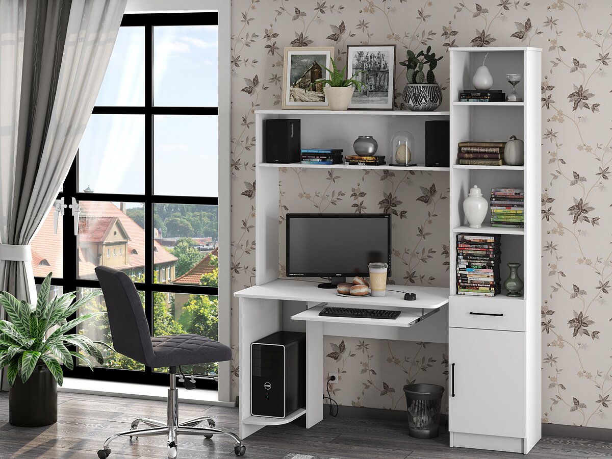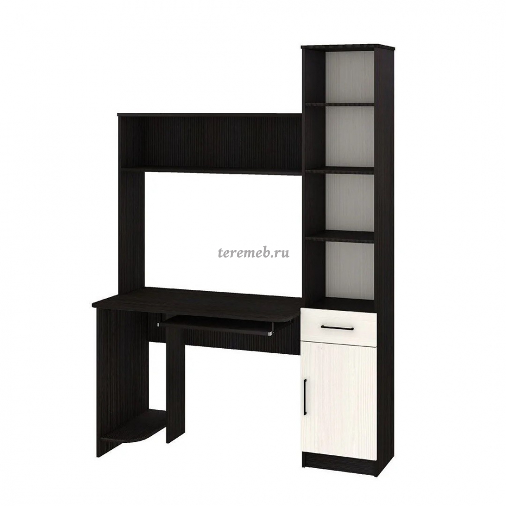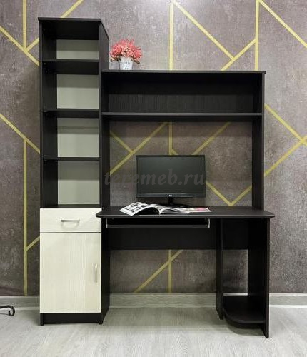 Функциональная надстройка с открытыми полками вмещают документы, учебники, принтер и прочую оргтехнику.