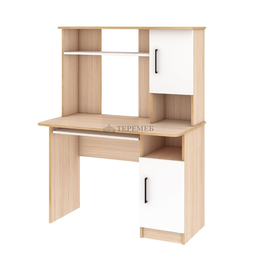 Функциональная надстройка с открытой полкой вмещает документы, учебники, принтер и прочую оргтехнику.