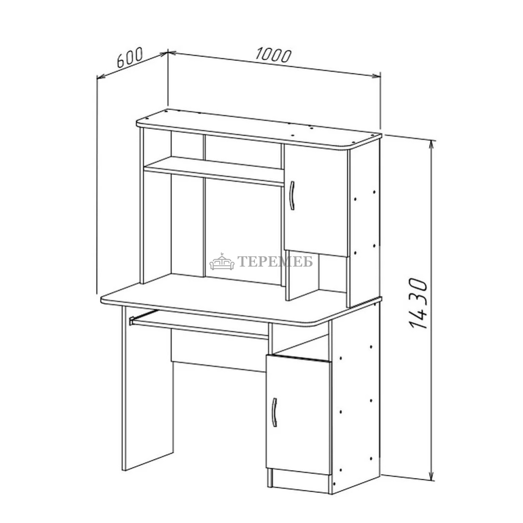 Под столешницей размещается тумба с распашной дверью для размещения системного блока или для хранения книг и папок.