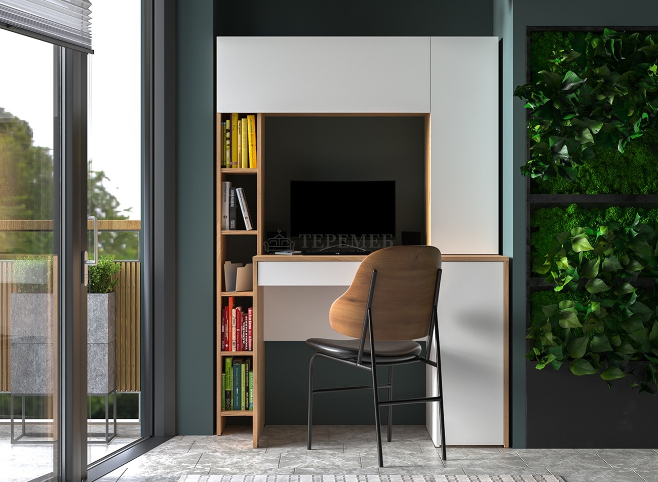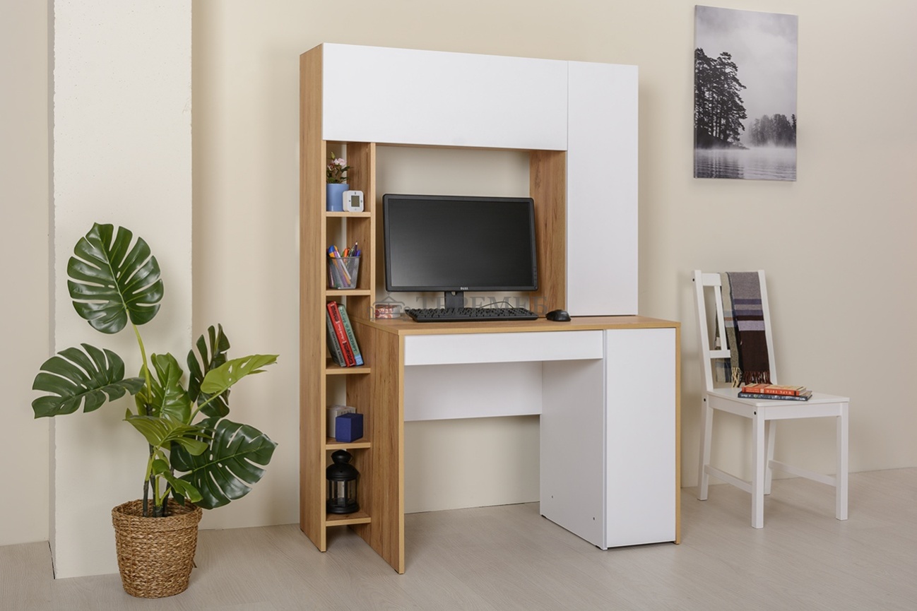 В тумбе с дверью, расположенной над столешницей, удобно разместятся учебники, рабочие тетради, дополнительная литература и т.п.