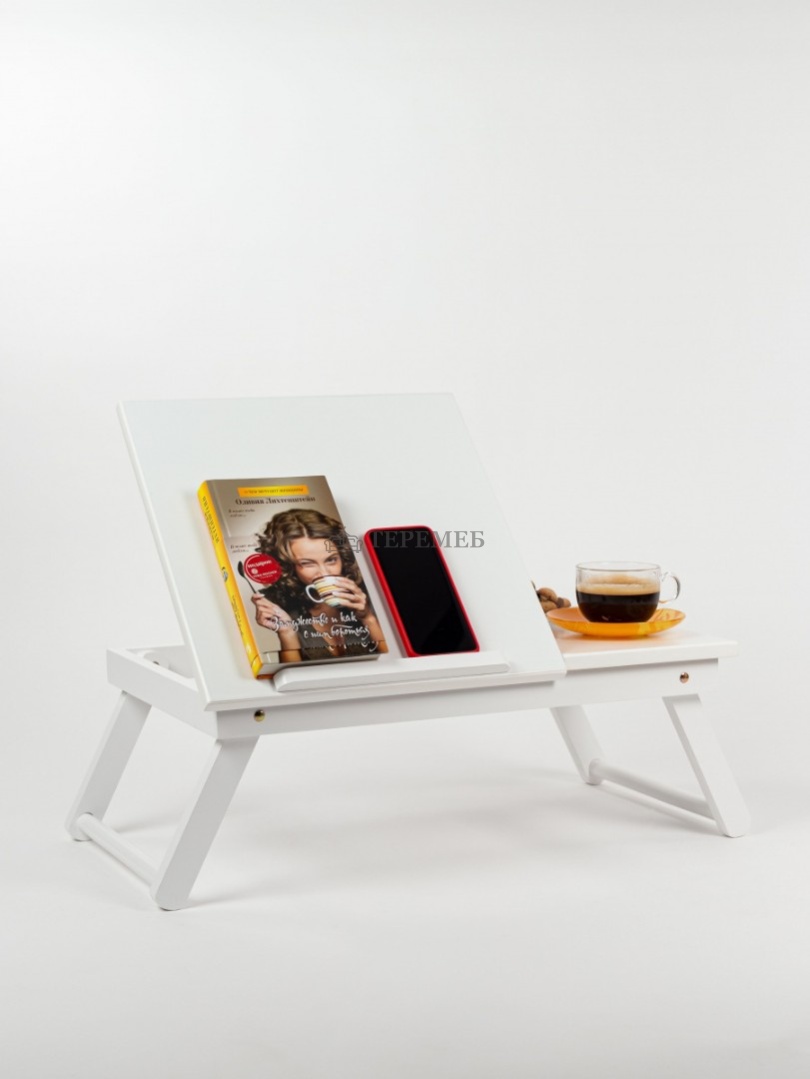 Две столешницы выполнены из современного МДФ. Благодаря столешнице с изменяемым углом наклона, позволит настроить столик под ваши предпочтения, а ограничитель не даст соскользнуть планшету или ноутбуку.