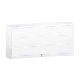 Комод установлен на декоративные пластиковые опоры серебристого цвета.