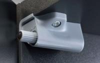 Крепится саморезом с той же стороны, где установлены петли (саморез в комплекте).