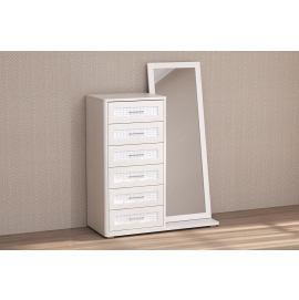 Фасады отделаны высокачественной экокожей с тиснением под рептилию и погонажного рамочного профиля МДФ, покрытого финиш-плёнкой, что придаёт необычность и оригинальный внешний вид этой модели.