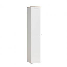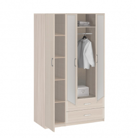За распашной дверью в левой части шкафа находится отделение для одежды с антресольной и нижней полкой, а также металлической горизонтальной штангой, с которой легко доставать костюмы и верхнюю одежду.