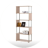 Большинство вариантов этого вида мебели относится к каркасному виду без задних и боковых стенок. Размеры полок зависят от модели и производителя. Есть стеллажи с симметричными полками одинаковых размеров, расположенных в стандартном порядке. Есть также модели с ассиметричными полками, с полками в виде ромба, треугольника, елочки и т.д.