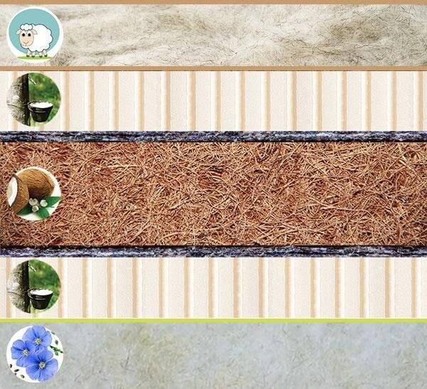 - кокосовая койра – жесткий материал из волокон кокоса, которые были спрессованы, он экологически чистый, не гниет, помогает испаряться влаге, дает хорошие ортопедические свойства;