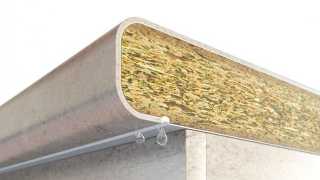 Материал довольно дорогой, поэтому из него изготавливают только ответственные элементы. Он выпускается не просто в виде плит, а может иметь круглообразную форму, п-образную, в виде уголка, типа «подоконник» и т.п.