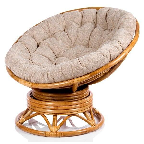 Плетеная модель из ротанга с ультрамягкой текстильной подушкой с ППУ наполнителем. Пружинный механизм кресла позволяет отклоняться на нем во все стороны, обеспечивает легкое качение. Максимально разрешенный вес 120 кг.